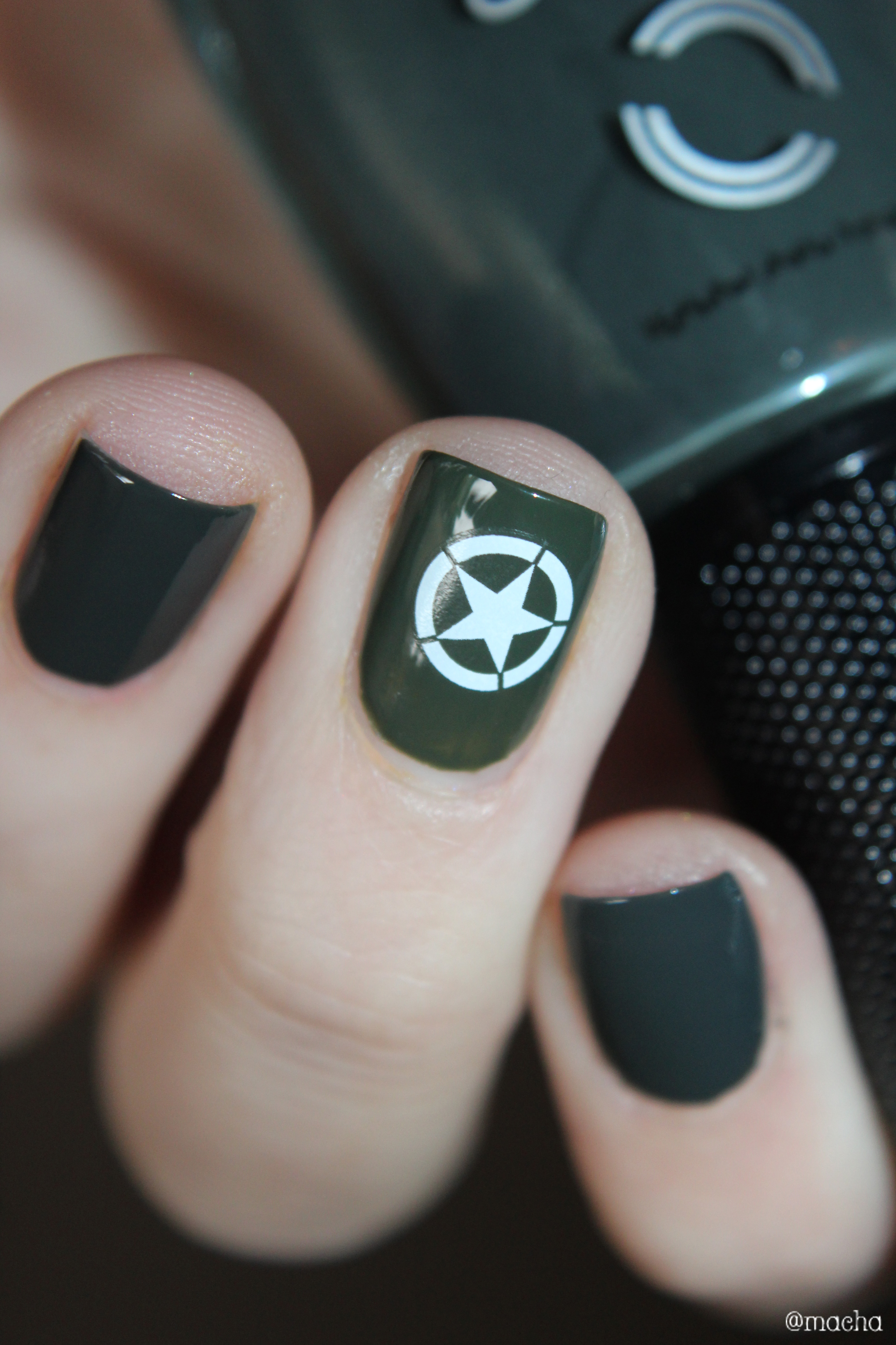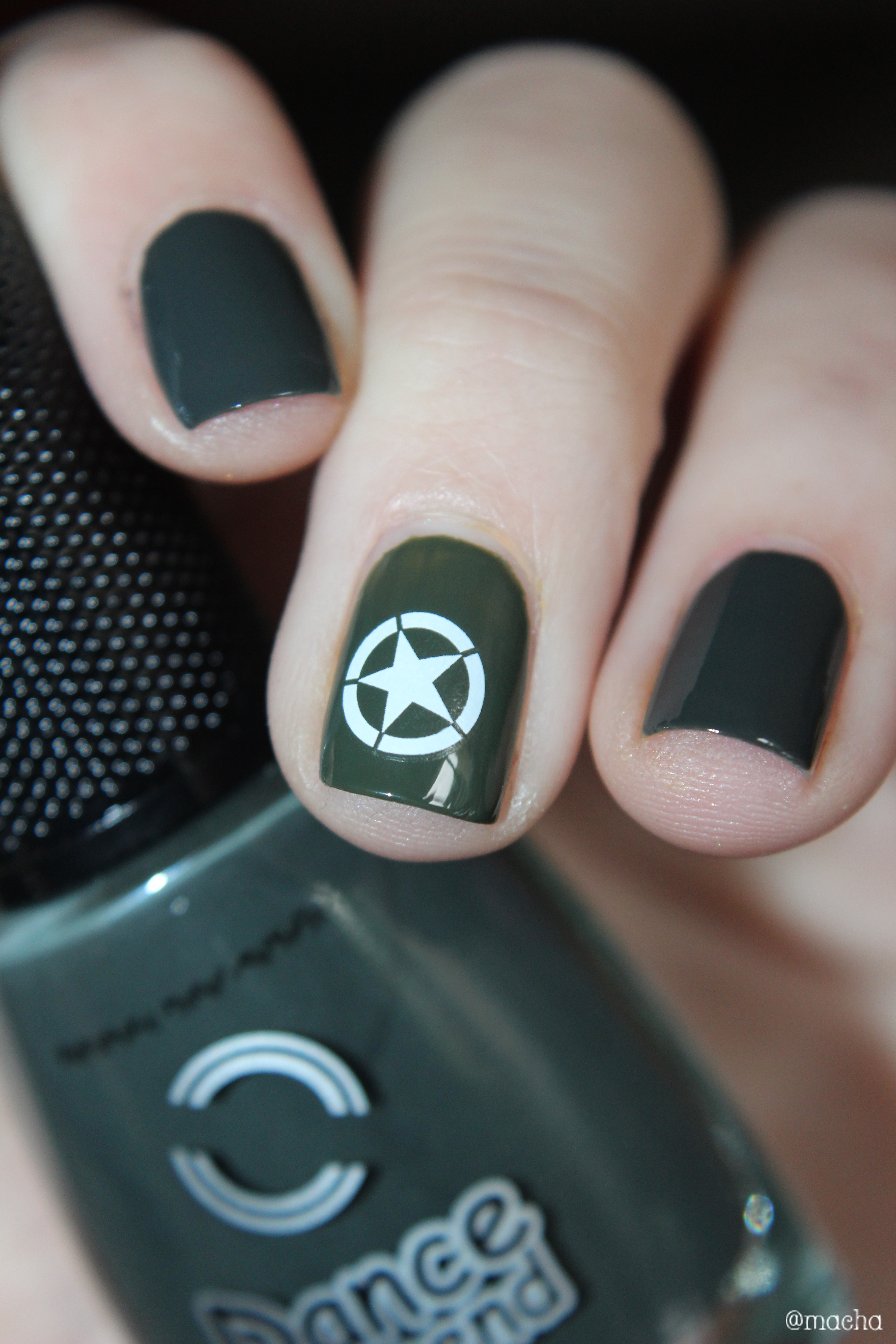 - d’un vernis « armée » kaki. J’aurais pu choisir Metropolis de Dior, mais qui fait la guerre en Dior ? J’ai donc jeté mon dévolu sur mon premier Dance Legend : Tank de la collection Military. Je ne crois pas qu’il existe un vernis plus approprié à la situation !